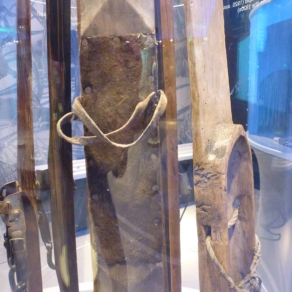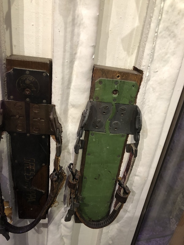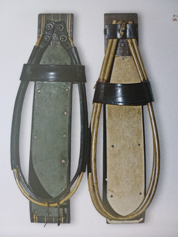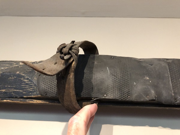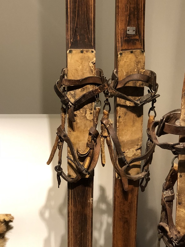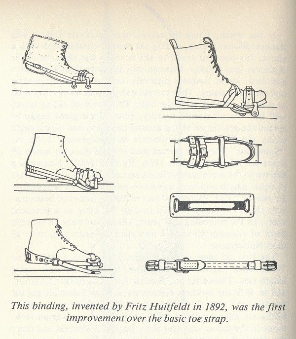Ski bindings have evolved from a basic toe strap to the inclusion of a heel strap made from natural materials. Later came the introduction of metal to add strength and stability. Some examples of the progression are shown in the illustrations below: