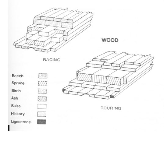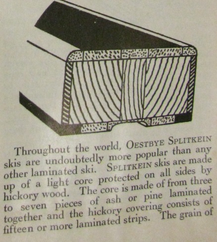 Later in the history of skis the concept of gluing together many strips of different woods became the norm and the ski shape could be more permanent as the glue held the wood from deforming or the ski becoming flat.