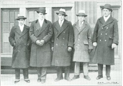 Left to right: Gerald Dupuis, Leonard Lehan, W. B. Thompson, Merritt Putnam and H. P. Douglas (team manager)